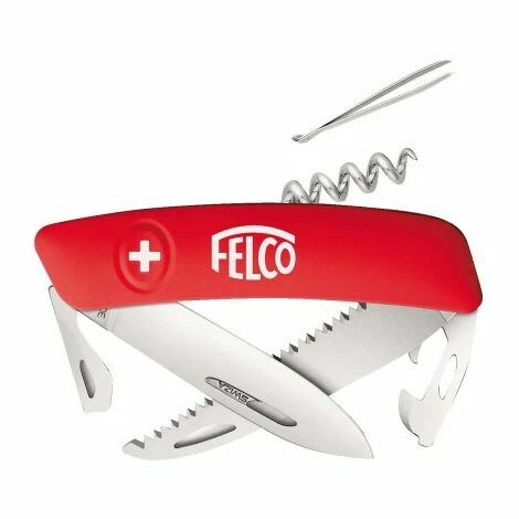 ergonomisches Designrobuste Edelstahlklingespülmaschinengeeignet (bis 80°C)ohne Phthalatemit Pinzette, Korkenzieher, Schraubenzieher Nr. 1 und Nr. 3, 2 Flaschenöffner, Drahtabbieger, SägeEdelstahlklinge: 75 mmLänge: 95 mm